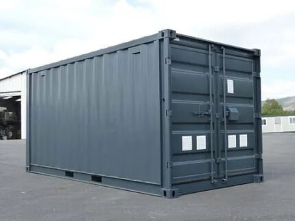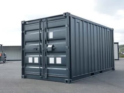 Wewnętrzna okładzina z płyt OSB i gładkiej wulkanizowanej płyty Zewnętrzna okładzina z matowej, czarnej blachy falistej Izolacja z poliuretanu natryskiwanego na suficie Izolacja z wełny szklanej na ścianach Podłoga z winylowej wykładziny typu click