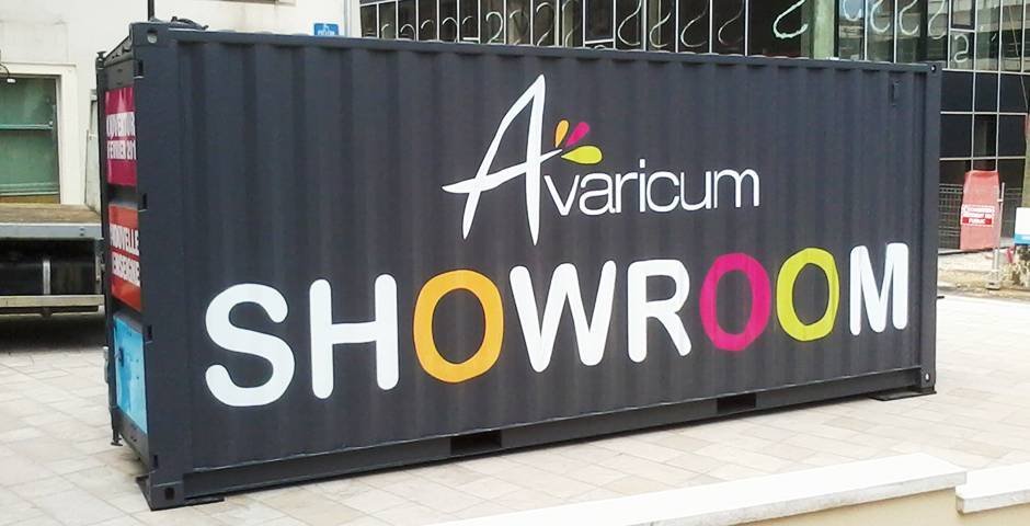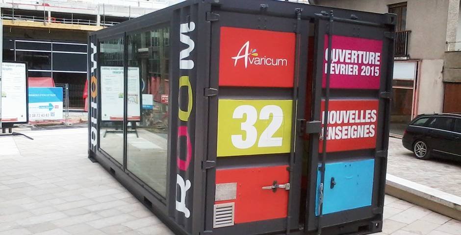 Kontener morski przekształcony w tymczasowe biuro sprzedaży